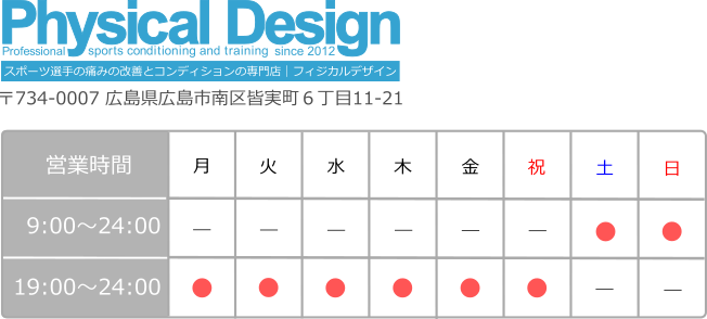 あなたの競技力を最大限に引き出すために、フィジカルデザインは全力でサポートします。痛みを改善し、理想的なコンディションを手に入れるために、今すぐご予約をお待ちしております。